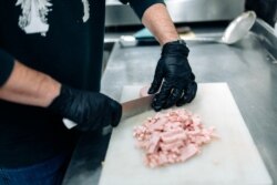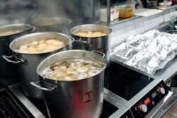 «Інакш нам не пасьпець, — кажа кухар Тацяна. Звычайна яна адказвае за супы, халодныя стравы, закускі. — Кухня не разьлічаная на такія аб’ёмы. У звычайныя дні мы працуем па індывідуальнай замове, не гатуем у запас».
