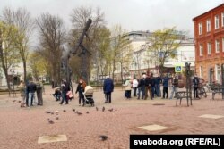 Тры дзясяткі магілёўцаў сабраліся на Плошчы зорак, якая за трыста мэтраў ад Магілёўскага гарвыканкаму, каб пакарміць галубоў і абмеркаваць, як зьмяніць жыцьцё ды ўладу.