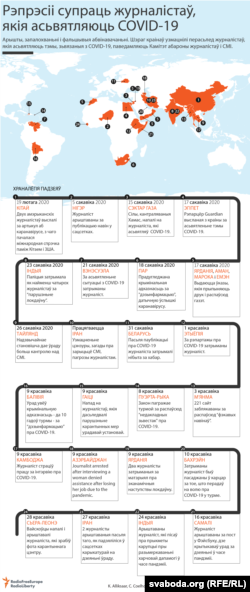 Наглядна: рэпрэсіі супраць журналістаў за асьвятленьне пандэміі
