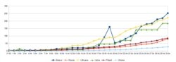 Ніякага пэўнага максымуму, пасьля якога адбывалася б выразнае зьніжэньне, на графіках для трох усходнеславянскіх краінаў не назіраецца. Можа пік будзе дасягнуты ўжо заўтра, а можа — празь некалькі тыдняў ці пазьней. А да таго могуць адбыцца розныя нечаканасьці.
