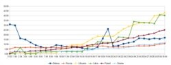 Адрозьненьне Літвы, Латвіі і Польшчы ад Беларусі, Украіны і Расеі паводле гэтага паказьніку — ня толькі арытмэтычнае. Яно зьвязанае з тым, што першыя тры краіны знаходзяцца ў іншай фазе пандэміі, яны ўжо перавалілі яе пік.