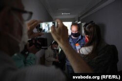 На працэс у суд Кастрычніцкага раёну не пусьцілі дачку журналіста Яніну і актывістаў, якія прыйшлі яго падтрымаць.