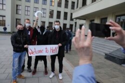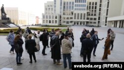 Прыхільнікі Міколы Статкевіча і «Народнай грамады», якія зьбіраюцца вылучацца як «кандыдаты пратэсту» на прэзыдэнцкіх выбарах 2020 году, сабраліся на прыступках Дому ўраду, каб даць прэс-канфэрэнцыю.