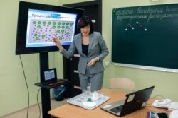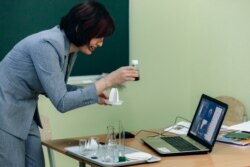 «У сувязі з каранавірусам з праграмы прыбралі лябараторныя заняткі. Я карыстаюся віртуальнай лябараторыяй, каб захаваць усе практычныя работы, — кажа настаўніца хіміі Марыя Тамасон. — Сёньня будзем разьбіраць, як разнастайныя рэчывы ўзаемадзейнічаюць з вадой. Тэма цікавая, можна шмат чаго дзецям паказаць».