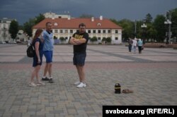 Як перадае карэспандэнт Свабоды, людзей ля станцыі мэтро «Кастрычніцкая» 20 чэрвеня ўвечары было няшмат. Тым ня менш каля крамы «Цэнтральны» невядомыя ў цывільным затрымалі і пасадзілі ў мікрааўтобус двух чалавек. У аднаго зь іх на заплечніку быў бел-чырвона-белы сьцяжок.