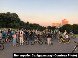 Некалькі дзясяткаў удзельнікаў на роварах і самакатах сабраліся недалёка каля стэлы «Менск — горад-герой» і праехаліся праспэктам Пераможцаў, пасьля гэтага «рассыпаўшыся» ў паркавых зонах.