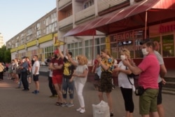 МЕНСК: У менскім мікрараёне Грушаўка пасьля жорсткага разгону АМАПу людзі зноў людзі выстраіліся ў «ланцуг салідарнасьці».
