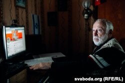— Трошкі пішу — успаміны, развагі, каб зьмясьціць гэта на сваёй старонцы. Спачатку пішу на паперы. У мяне звычка такая. Трэба добра валодаць беларускай мовай. Як жа — выставіць людзям? У мяне ёсьць слоўнікі. Засталіся з часоў, калі я працаваў рэдактарам газэты «Выбар» (адно зь першых дэмакратычных выданьняў у Віцебску. Выходзіла з 1991 па 2005 год. — РС). Калі яна перастала выходзіць, я ўсё, што тычыцца беларускай мовы, забраў.