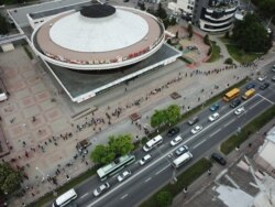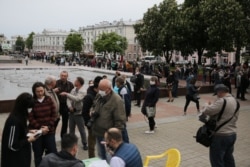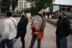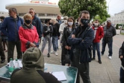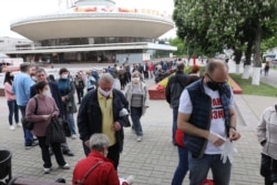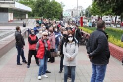 Жыхары Гомля 28 траўня выстраіліся ў чаргу, каб пакінуць подпіс за Сьвятлану Ціханоўскую, якая вылучаецца кандыдатам на прэзыдэнта.