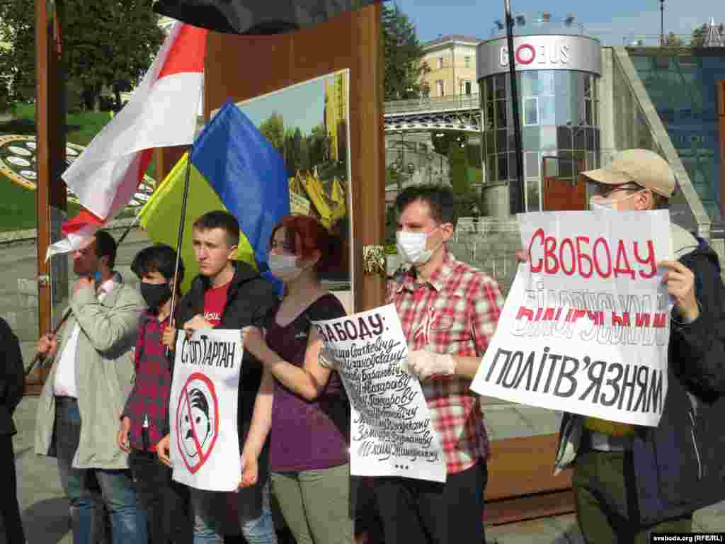 Каля дзясятка беларускіх і ўкраінскіх актывістаў правялі на Майдане Незалежнасьці ў Кіеве акцыю падтрымкі і салідарнасьці з затрыманымі ўдзельнікамі ініцыятыўных груп і апазыцыйнымі палітыкамі.
