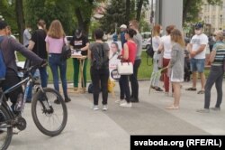 Ахвотнікі падпісацца за прэтэндэнтаў на вышэйшую дзяржаўную пасаду выстройваюцца ў доўгія чэргі. Найбольшая з іх была за Ціханоўскую. Яна расьцягвалася да 70 мэтраў. Людзі выстойвалі ў ёй да 45 хвілінаў. Падпісаўшыся за Ціханоўскую, яны становяцца ў чаргу да іншых вылучэнцаў. Прыходзілі, каб паставіць подпісы за іх, сем’ямі. Выбарчыя пікеты праходзяць без канфліктаў зь міліцыяй. Міліцыянтаў у форме наагул няма на пляцоўцы.