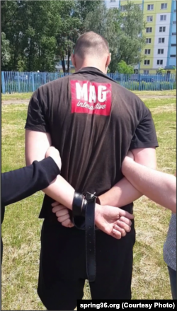 У Гомлі міліцыя зьвязала рукі затрыманаму актывісту папругай. ВІДЭА