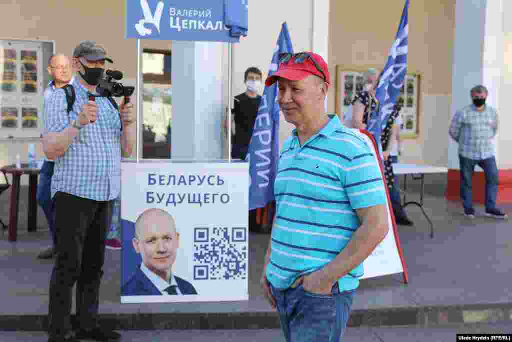 Прэтэндэнт на пасаду кандыдата ў прэзыдэнты Беларусі Валер Цапкала 17 чэрвеня наведаў выбарчы пікет у Маладэчне.