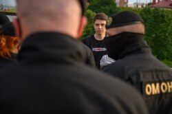 Каля 20:00 на плошчу прышлі 8 супрацоўнікаў АМАП. Яны ішлі нібы сьцяной праз увесь ланцуг і папярэджвалі кожнага, каб тыя сышлі, калі яны не прыйшлі на мітынг.