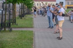 Нацыянальных сьцягоў падчас акцыі было няшмат. Сабраныя хутчэй нагадвалі жыхароў гораду на шпацыры, чым пікетоўцаў.