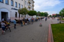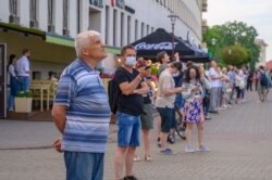 Паступова чарга расьцягнулася па-за плошчу. Людзі перайшлі праз дарогу і сталі пад драмтэатрам і далей па ўсім Старым мосьце.