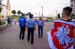 Праз паўгадзіны пасьля пачатку ланцуга салідарнасьці на плошчу выйшлі міліцыянты з гукаўзмацняльнікамі. Яны папярэджвалі, што акцыя незаконная, і прасілі разысьціся. Людзі заставаліся на месцы.
