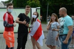 Людзі пачалі станавіцца ў ланцуг побач зь пікетамі для збору подпісаў за Сьвятлану Ціханоўскую і Валера Цапкалу каля 19:00.