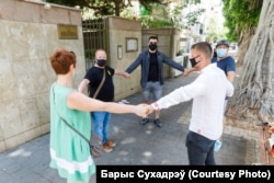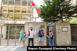 Акцыя салідарнасьці з затрыманымі ў часе прэзыдэнцкай кампаніі ў Беларусі прайшла 20 чэрвеня раніцай каля амбасады Беларусі ў Тэль-Авіве.​