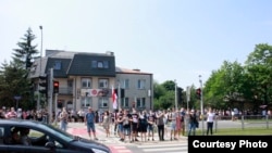Сотні беларусаў каля амбасады Беларусі ў Варшаве патрабавалі вызваленьня палітвязьняў. ШМАТ ФОТА