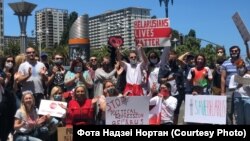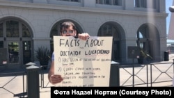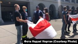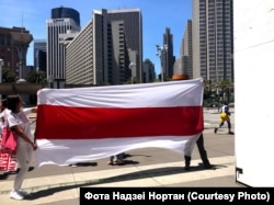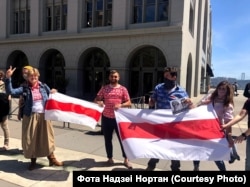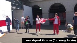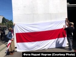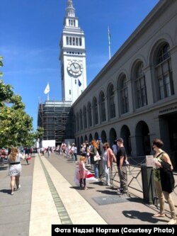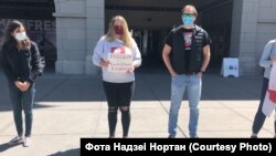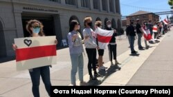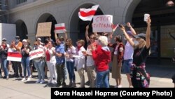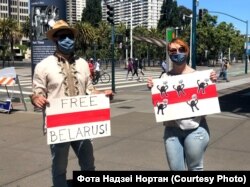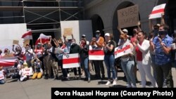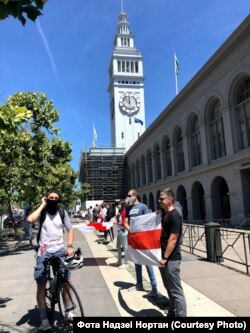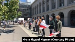 150 беларусаў Сан Францыска і Бэй Эрыі прыйшлі ў нядзелю на пікет салідарнасьці, стаўшы ў ланцуг уздоўж будынка галоўнага порту Сан Францыска (San Francisco Ferry Building).