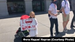 Ланцуг расьцягнуўся на 180 мэтраў. Людзі пляскалі ў далоні, скандавалі "Адпусьці","Жыве Беларусь", тлумачылі мінакам, чаму прысьвечана акцыя.