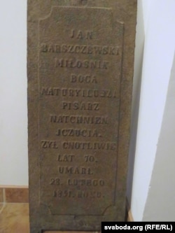 Як паведаміла Свабодзе загадчыца аддзелу культуры Чуднаўскай гарадзкой рады Сьвятлана Захарчанка, надмагільная пліта Яна Баршчэўскага, знойдзеная летась на адным з прыватных падворкаў гораду, у добрым стане: