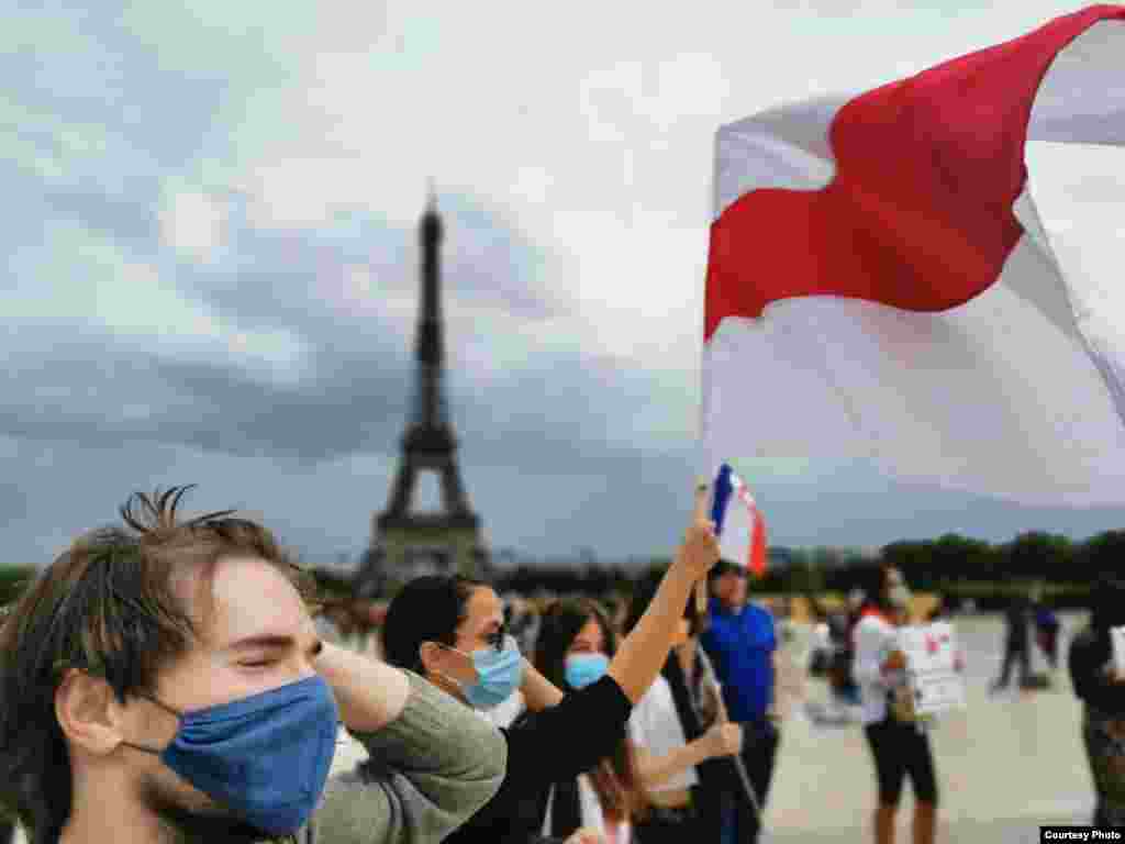 У Парыжы 27 чэрвеня адбылася акцыя ў падтрымку беларусаў, якія цярпяць перасьлед з боку ўладаў падчас выбарчай кампаніі. Фота Аляксандра Грыбко.
