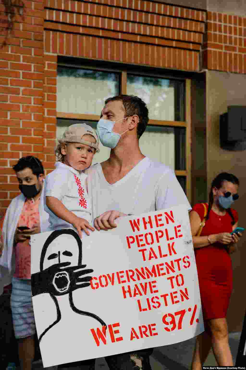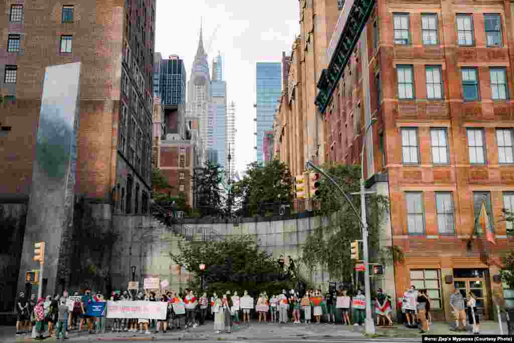 Беларусы Нью-Ёрку правялі ланцуг салідарнасьці ў Нью-Ёрку, у парку ля штаб-кватэры ААН. Фота: