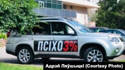 Першамайскі суд Менску пакараў штрафам кіроўцу Андрэя Ляўшыцкага за непадпарадкаваньне супрацоўнікам міліцыі на 10 базавых, і на 2 базавых — за налепкі на аўтамабілі: герб «Пагоня» і «Псіхо3%». Яго машыну паставілі на штрафстаянку. Кіроўцу суткі пратрымалі ў пастарунку.