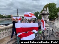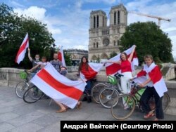 Як паведаміў журналіст Андрэй Вайтовіч, беларусы на роварах праехалі зь бел-чырвона-белымі сьцягамі каля ракі Сэны. Яны спыняліся каля сабору Нотр-Дам і каля будынку францускага Міністэрства замежных спраў.