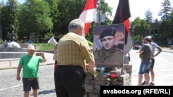 Удзельнікі акцыі хвілінай маўчаньня ўшанавалі памяць Міхася Жызьнеўскага і Міколы Ільіна, які загінуў 13 ліпеня на перадавой на Данбасе.