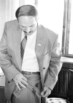 Існуюць фота Лукашэнкі з 1994 году: пасьля таго, як яго не пусьцілі ў Дом ураду і ён пабіўся зь міліцыяй, ён паказвае свае штаны, зусім неблагія. Праўда, падраныя.