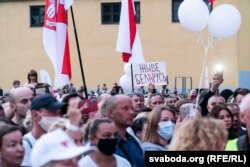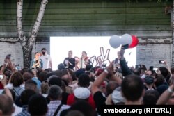 У Бабруйску на агітацыйны пікет прэтэндэнткі на прэзыдэнцтва Сьвятланы Ціханоўскай і яе партнэрак па аб‘яднаным выбарчым штабе Веранікі Цапкалы і Марыі Калесьнікавай сабралася больш за 6000 чалавек.