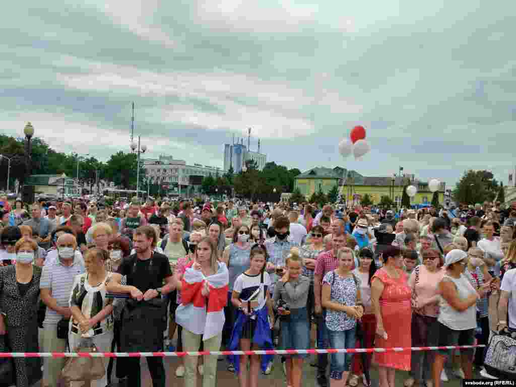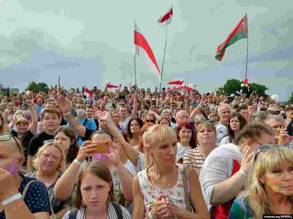У Рэчыцы на Гомельшчыне адбыўся агітацыйны мітынг Сьвятланы Ціханоўскай. Паводле назіральнікаў, сабралася блізу 2-3 тысяч чалавек.