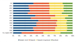 Апошняя частка графіку — разьмеркаваньне паводле адукацыі ўсяго насельніцтва 18 гадоў і старэйшага паводле дадзеных перапісу насельніцтва 2009 году