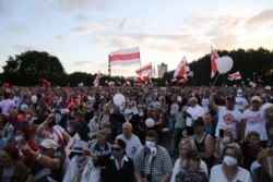 Кандыдатка ў прэзыдэнты Беларусі Сьвятлана Ціханоўская 30 ліпеня выступіла на мітынгу-канцэрце ў сваю падтрымку ў менскім парку Дружбы народаў.