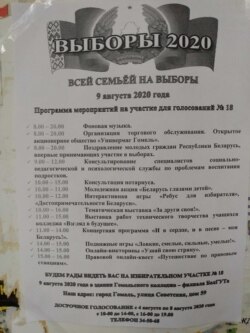 Выбарцам, якія прагаласуюць на ўчастку № 18 Цэнтральнага раёну Гомля абяцаюць канцэртную праграму «І ў сэрцы, і ў песьні — мая Беларусь», фонавую музыку, буфэт, кансультацыі спэцыялістаў сацыяльна-пэдагагічнай і псыхалягічнай службы па праблемах выхаваньня падлеткаў, кансультацыі натарыюса, моладзевую акцыю «Беларусь вачамі дзяцей», інтэрактыўная гульні «Рэбус для выбаршчыка» і «Цікавосткі Беларусі», выставу работ тэхнічнай творчасьці «Погляд у будучыню», рухомыя гульні «Спрытныя, сьмелыя і ўмелыя», віктарыну «Спазнай сваю краіну».