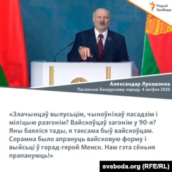«Вы хочаце ў 90-я?» І тут Лукашэнка сказаў фразу, пра якую, ён магчыма, яшчэ пашкадуе. Цытую даслоўна — «Засталіся Шэйман і яшчэ пару чалавек, якія зь пісталетамі хадзілі і езьдзілі, зьнішчаючы падонкаў».