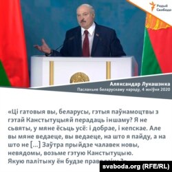 Лукашэнка сказаў, што цяперашні склад парлямэнту абавязкова прапануе народу новы тэкст Канстытуцыі. «Але галоўнае, Канстытуцыя не павінна выклікаць палітычны крызіс», як у 90-я, калі арудавалі банды.