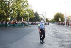 Яшчэ раніцай тут не было ні агароджы, ні міліцыі. Яны прыехалі ў сквэр пасьля 15-й гадзіны, адразу пасьля заявы Сьвятланы Ціханоўскай, што яна як грамадзянка Беларусі разам з Марыяй Калесьнікавай і Веранікай Цапкалай плянуе а 19-й наведаць Дзень адкрытых дзьвярэй установаў дадатковай адукацыі, які гарадзкія ўлады ладзяць сёньня ў сквэры.