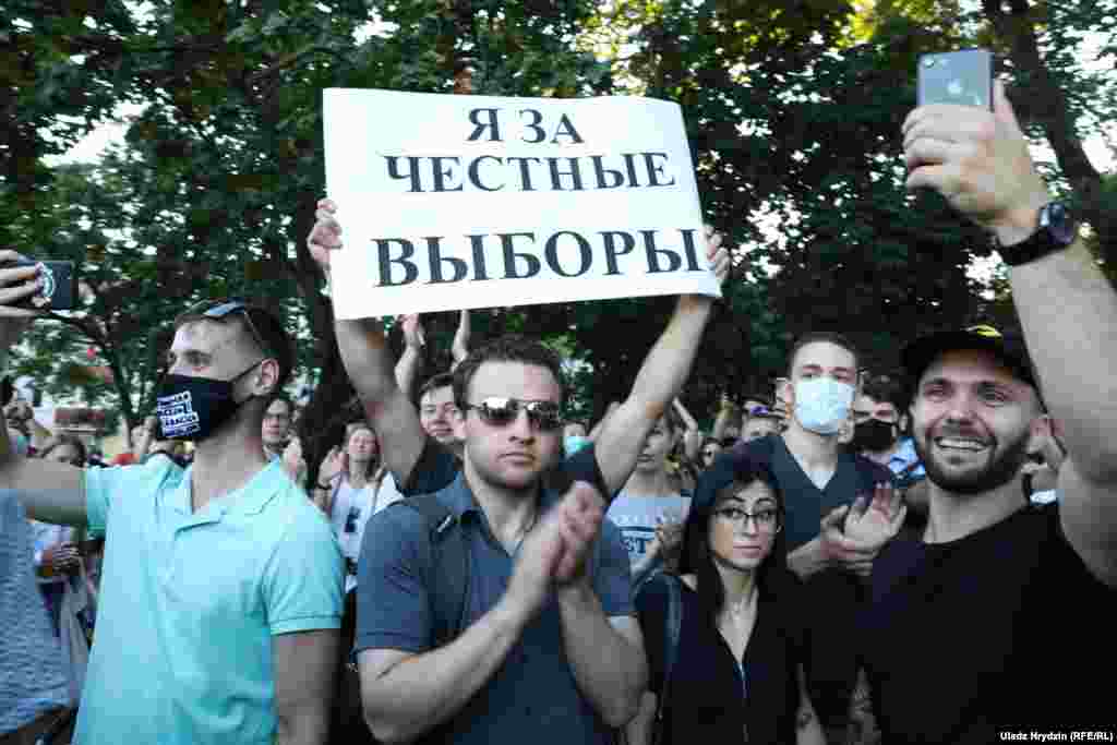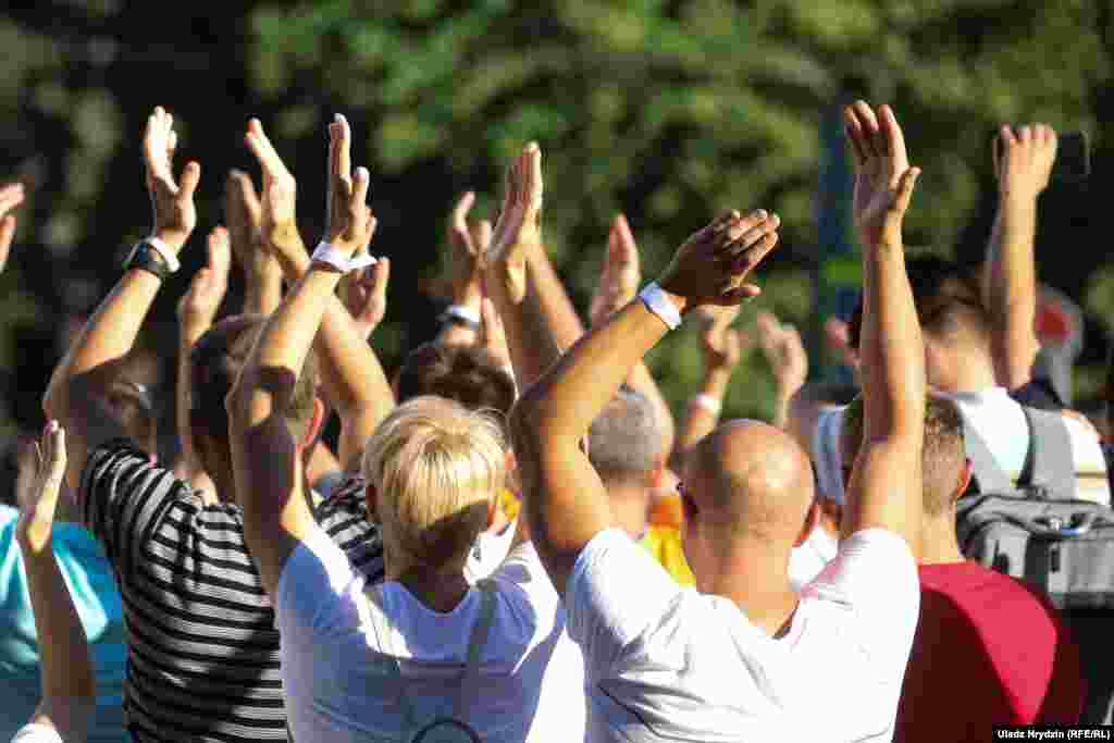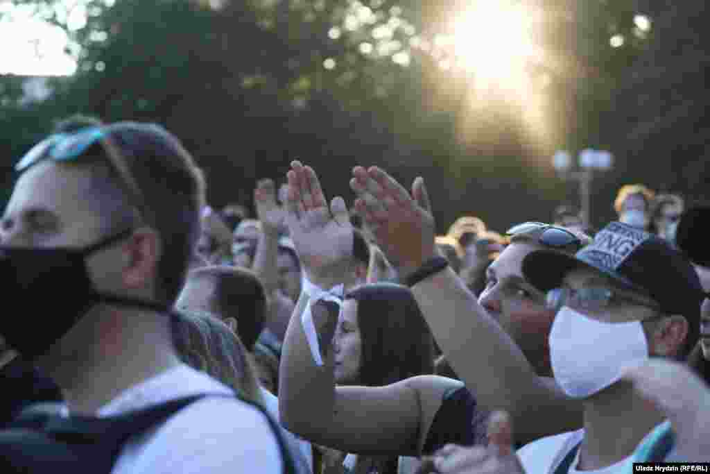 Як тысячы чалавек чакалі Ціханоўскую ў Кіеўскім сквэры. ШМАТ ФОТА