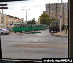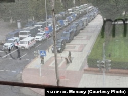 Галоўныя будынкі і плошчы ў цэнтры Менску ачэпленыя тэхнікай і салдатамі ўнутраных войскаў