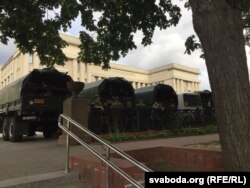 Галоўныя будынкі і плошчы ў Менску ачэпленыя тэхнікай і салдатамі ўнутраных войскаў. ФОТА