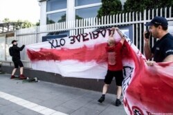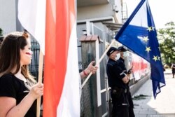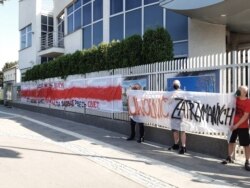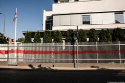 Перад будынкам амбасады Беларусі ў Варшаве 11 жніўня прайшла акцыя салідарнасьці зь беларускім народам, арганізаваная групай палякаў.