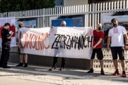 Удзельнікі акцыі разьвесілі на агароджы амбасады 15-мэтровы бел-чырвона-белы банэр з надпісамі «Свабодныя людзі — браты» і «Хто забівае аднаго чалавека, той забівае ўвесь сьвет». Яны таксама задзейнічалі дымавыя шашкі ў беларускіх нацыянальных колерах і на астатняй частцы агароджы дамалявалі спрэем чырвоную паласу.