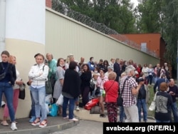 Каля турмы на Акрэсьціна ў Менску днём 12 жніўня ўтварыліся вялікія чэргі сваякоў затрыманых падчас пратэстаў пасьля выбараў 9 жніўня. Людзі ня ведаюць, дзе іх затрыманыя блізкія, сьпісаў няма.