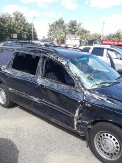 Ён спужаўся за сваю сямʼю і выехаў на сустрэчную паласу. Калі яго машына параўнялася з таксоўкай, па ёй таксама ўдарылі дручком у лабавое шкло, яно рассыпалася. У гэты ж час збоку ў яго ўрэзаўся «БТР», як ён кажа, — вайсковая машына «Тыгр». Ззаду ў салён пасыпалася шкло.