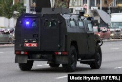 Да ланцуга мэдыкаў пад'яжджалі 2 аўтазакі, 2 мікрааўтобусы зь міліцыяй і браняваная машына.