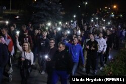 Пасьля мітынгу ў Жодзіне ўвечары 13 жніўня прыблізна 700 чалавек зладзілі шэсьце зь ліхтарыкамі ў падтрымку працоўных БелАЗу.
